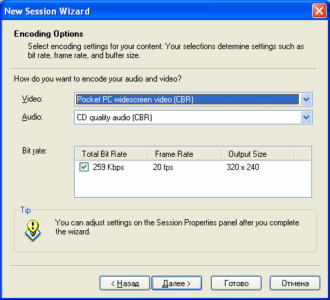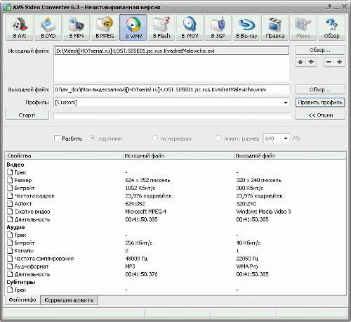позволяющая подготовить мобильную версию фильма для WM-устройств в