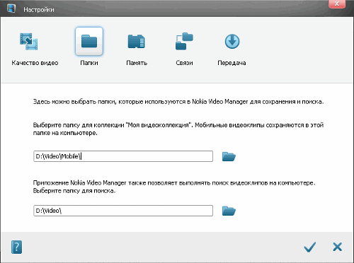 При первом запуске Nokia Video Manager пользователю будет предложено