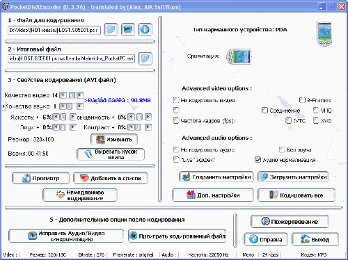 информацию о кодируемом файле. Для вызова панели настройки программы