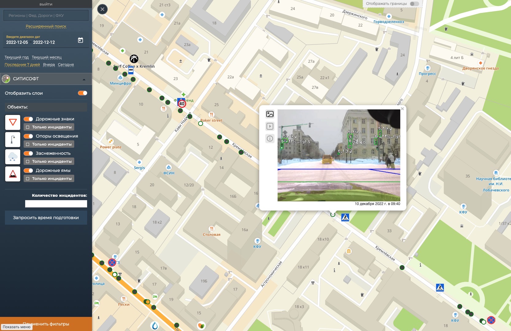 Цифровой сервис в автоматическом режиме определяет потребность в уборке дорог от снега и наледи, фиксирует проезды уборочной техники и качество проведенных работ. CitySoft также отслеживает акты вандализма (порча тротуаров, защитных ограждений), отсутствие дорожной разметки, проблемы с уличным освещением, возникновение препятствий для работы городских служб и другие факторы, влияющие на безопасность участников дорожного движения. Работа сервиса положительно сказалась на чистоте и безопасности казанских дорог.