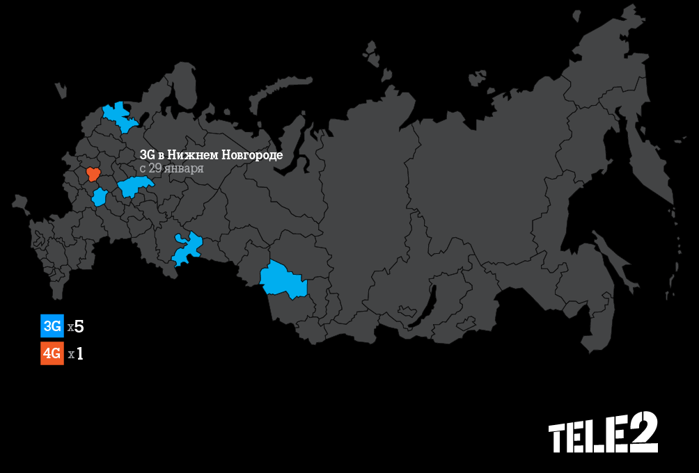 Это первый региональный запуск сети 3G Tele2 в 2015 году и пятый по счету, начиная с 2014 года: С.-Петербург, Новосибирск, Челябинск, Тамбов и теперь вот Нижний.
