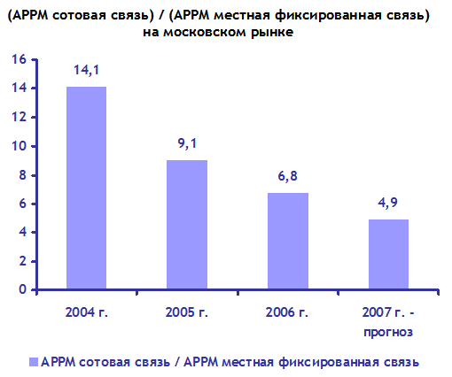 В 2004 году средневзвешенная стоимость минуты местной фиксированной связи была в 14 раз ниже, чем средневзвешенная стоимость минуты в сетях московских сотовых операторов - к 2006 году разница в тарифах сократилась до 7 раз. По итогам 2007 года MForum Analytics прогнозирует, что средневзвешенная стоимость минуты в сетях московских сотовых операторов будет в 5 раз выше, чем в сетях фиксированных операторов.