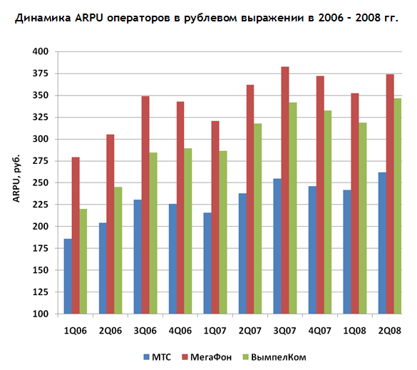 Итоги 2Q08Темпы роста ARPU российских операторов продолжают снижаться30.09.2008, MForum.ru Основной тенденцией развития рынка сотовой связи РФ в 2007 года стал долгожданный операторами устойчивый рост показателя ARPU. Следует отметить, что показатель ARPU операторов «большой тройки», традиционно отражаемый в финансовой отчетности в долларах США, рос по причине двух основных факторов: • Рост показателя MOU* • Снижение курса USD по отношению к RUR. Тарифы сотовых операторов, номинированные в рублях при снижение курса доллара США формировали рост показателя ARPU из-за курсовых разниц. * - трафик в расчете на 1 абонента в месяц Снижение показателя ARPU сотовых операторов происходило до середины 2006 г., именно в третьем квартале 2006 года переломная тенденция к росту ARPU была зафиксирована всеми основными российскими игроками. Тем не менее, начавшаяся два года назад позитивная тенденция уже начинает «выдыхаться». По данным MForum Analytics, темпы прироста показателя ARPU на российском рынке сотовой связи снижаются уже четвертый квартал подряд, что можно характеризовать как уже сформировавшуюся тенденцию. По итогам 2Q08 прирост показателя ARPU на российском рынке сотовой связи к аналогичному периоду прошлого года составил всего 8%, в 1Q08 показатель составлял около 11%. По прогнозам MForum Analytics, при сохранении существующей тенденции рост показателя ARPU в 2008 году не превысит уровень рублевой инфляции. Более подробную информацию о рынке сотовой связи РФ можно получить в рамках аналитических отчетов. Аналитические отчеты MForum Analytics - http://www.mforum.ru/analit/products.htm Заказ аналитических отчетов MForum Analytics - analytics@mforum.ru Более подробную информацию о рынке сотовой связи РФ можно получить в рамках аналитических отчетов MForum Analytics: аналитические отчеты MForum Analytics - http://www.mforum.ru/analit/products.htm Чтобы заказать отчет MForum Analytics обратитесь, пожалуйста, по адресу: . © аналитик Дмитрий Деев, Задать вопрос аналитику |