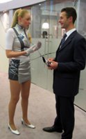 - НМ- начинающие модели: студентки начальных курсов, много школьниц. Делают первые шаги и поэтому очень хотят понравиться руководству. По глазам видно, что сделают все, но от этого, почему-то к стендам все равно подходить не хочется. Вот девушки и ходят по павильону, самостоятельно раздавая призовую макулатуру. Отличительная черта НМ – головные уборы, никак не связанные с происходящим. Как известно, красота спасет мир, поэтому услуги СТА и НМ - недешевое удовольствие для компаний: от 1000 до 3000 рублей в день за штуку. В среднем на стенде работают от 5 до 20 моделей, поэтому появляется следующая категория
