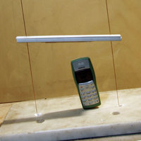 Принцип измерения механической прочности. Телефон роняется на твердую гранитную поверхность сериями из трех бросков. Каждая серия проводится пятью способами: телефон бросается строго вертикально, строго вертикально в перевернутом состоянии (дисплеем вниз), горизонтально дисплеем вниз (плашмя), вертикально под углом 45% (нижним ребром), вертикально под углом 45% дисплеем вниз (верхним ребром). Падения осуществляются с высоты 0.6, 1.2, 1.8 и 2.4 метра. Таким образом, максимальное количество бросков - 60. Каждая серия из трех бросков под определенным углом оценивается коэффициентом Кn, где n - номер эксперимента. Кn=1, если после n-ой серии бросков на телефоне не видны повреждения, все функции работают исправно. Кn=0.9, если после n-ой серии бросков корпус телефона потерял целостность (отлетела крышка, панель, заглушка или другой элемент, причем, без повреждений, то есть, телефон может быть полностью восстановлен пользователем). Кn=0.7, если после n-ой серии бросков на телефоне видны небольшие внешние повреждения, устранимые малыми затратами (царапины, сколы краски, люфт панелей/аккумуляторной крышки и т.п.). Кn=0.5, если после n-ой серии бросков внешние повреждения телефона значительны и требуют больших (в сравнении со стоимостью телефона) затрат для ремонта (глубокие царапины, трещины корпуса и дисплея, поломка крепления батареи и т.п.). Кn=0.2, если после n-ой серии бросков кроме всего прочего в телефоне наблюдается частичная потеря функций (погасла подсветка, пропал звуковой сигнал вызова, сломался вибровызов и т.п.). Звонить и принимать звонки при этом можно. Кn=0, если после n-ой серии бросков телефон перестал быть пригодным для голосовой связи (сломался микрофон/динамик, погас дисплей и т.п.). Общая оценка считается по формуле: 2*(К1+К1*К2+....+К1*...*К5)+4*(К1*...*К6+К1*...*К7+....+К1*...*К10) + 6*(К1*...*К11+...+К1*...*К15) + 8*(К1*...*К16+...+К1*...*К20), где К1-К5 - серия бросков с высоты 0.6 м под разными углами, К6-К10 - тоже самое с высоты 1.2 м, К11-К15 - с высоты 1.8 м, К16-К20 - с высоты 2.4 м. Максимальное количество баллов - 100.
