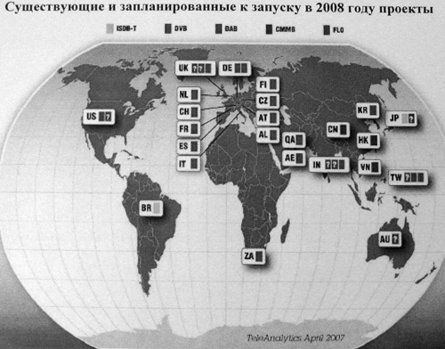 Можно говорить, что развитие мобильного ТВ в мире осуществляется бурно! Уже первые опыты в Южной Корее со стандартами DMB-S и DMB-T показали, что "пациент скорее жив, нежели мертв", что набор абонентской базы происходит сравнительно быстро. Примеру корейцев с успехом последовал итальянский оператор Hutchison 3G, сейчас ожидается старт проектов DVB-H в Западной Европе. Можно говорить об определенной активности и в США (AT&T) ряд операторов заявили о планах внедрения различных вариантов mediaFLO и других стандартов. Мобильное ТВ процветает в Японии. График роста числа абонентов мобильного ТВ, составленный в явнваре 2008 года компанией TeleAnalytics показывает экспоненциальный рост абонентской базы - мечта любого инвестора!