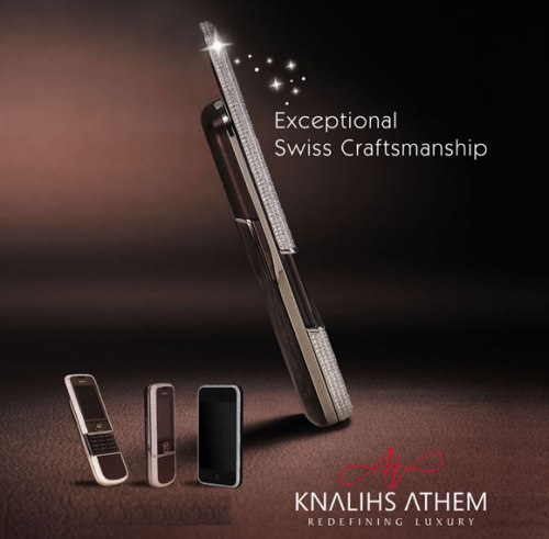 Если шведскому дизайнеру и ювелиру Кналесу Атему (Knalihs Athem) удастся продать свой шедевр, его ожидает куш побольше. Объектом вдохновения ювелира стала знаменитая Nokia 8800 – модель сама по себе роскошная. А украшенная 1000 бриллиантами высшего качества общим весом в 6.78 карат она заблистала во всей красе.