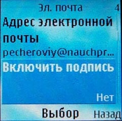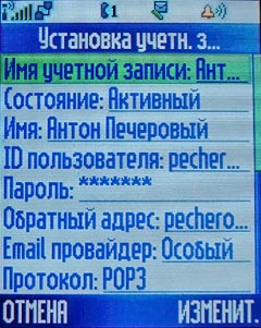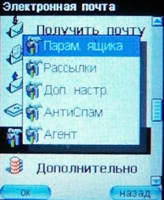 Установку параметров почтового ящика осуществляют в подменю «Установка учетной записи», при этом телефон предлагает большое количество настроек. Можно задать даже режим очистки – сохранять только последние n-сообщений, либо удалять сообщения старше определенного возраста. Также можно настроить максимально допустимый размер сообщения. Настройка интервала автоматической проверки наличия новых сообщений выделена в отдельный подпункт «Проверка сообщений» меню «Наст. Email сообщ.». Подпись, автоматически присоединяемая к сообщению, едина для всех учетных записей и настраивается через соответствующий пункт меню «Наст. Email сообщ.».