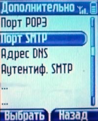 Из рассмотренных моделей у телефона Nokia 6230i самый запутанный путь к настройкам электронной почты, хотя все вполне логично. Для человека, не имеющего опыта использования телефонов этого бренда поиск меню, в котором производятся настройки, без внимательного изучения инструкции на телефон, может оказаться затруднительным. В целом настройки весьма гибкие. Для приема и отправки сообщений могут быть заданы разные точки доступа. В тоже время, для работы e-mail клиента может быть использована «предпочтительная» точка доступа, установленная для всех приложений телефона. Также в настройках можно задать максимальное количество сообщений загружаемых за один сеанс работы. Необходимость подобного ограничения обусловлена ограниченным объемом встроенной памяти телефона. Настройку использования SSL и включение/отключение сохранения копий сообщений на сервере задают в меню самого e-mail клиента (Вар-ты (левая софт-клавиша) → Дополнительно).