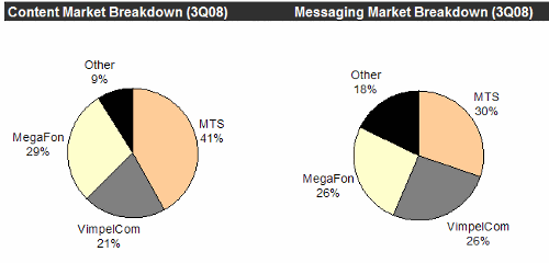 2. МТС сохранили доминирующее положение на рынке мобильного контента - доля по итогам 3Q08 составила 41%.