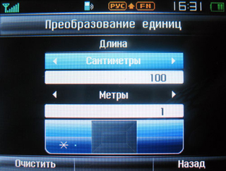 При навигации левая софт-кнопка по большей части неактивна (либо же отвечает за меню «Функции»); выбор происходит клавишей «ОК», возврат на пункт выше – правой софт-кнопкой. Чтобы выйти в режим ожидания, нажмите кнопку отбоя (она же включает/выключает телефон). Как уже говорилось, для навигации можно использовать боковое управление, полностью заменяющее клавиатурное.