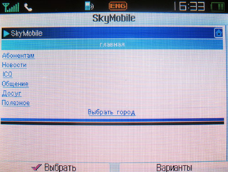 В отдельный пункт главного меню выделена работа с приложениями, приобретенными в SkyShop (называется этот пункт BREW – по названию платформы, на которой выпущен девайс). Когда вы открываете его, то в самой нижней строке видите маленькие иконки доступных опций: переход в магазин SkyShop, иконки уже установленных приложений, меню установок и справочный сервис. В установках доступно изменение порядка расположения закачанных приложений и их перемещение, настройка вида меню (маленькие иконки, большие иконки или список), а также просмотр журнала операций. В пункте «Справка» подробно расписано, как совершать покупки в SkyShop, что именно оплачивается, как удалить уже установленные приложения, что значит ограниченное использование и какова процедура отказа от подписки. Одним словом, здесь собраны все наиболее часто задаваемы вопросы.