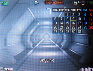 Почти все они собраны в меню «Органайзер». Календарь соединен с планировщиком и называется «Ежедневник». Реализация его особых претензий не вызывает, хотя занимает он только 2/3 экрана, остальное пространство пустует. Текущая дата подсвечена синим квадратиком. Доступен ввод новых событий, переход к дате, просмотр состояния памяти (вводит можно до 500 событий) и удаление. При вводе нового события указываются тема, описание, дата начала, сигнал и напоминание.