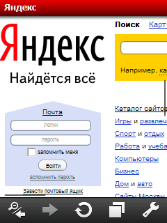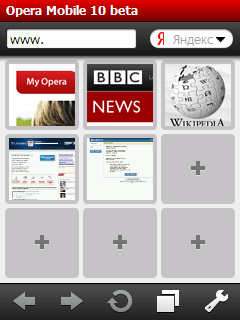 Opera Mobile 10 beta для пользователей из стран СНГ поставляется с установленной по умолчанию поисковой панелью от «Яндекса».