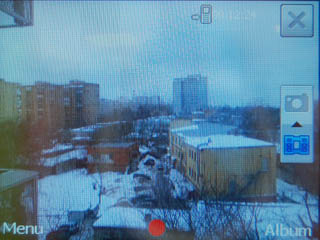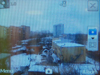 Камеру хвалить особо не за что. Скромная по сегодняшним временам матрица в 3.2 мегапикселя (2048 x 1536), нет автофокуса, есть 4-х кратный цифровой «зум», который управляется качелькой "громкости". В настройках можно выставить режим съемки – «ночной» или «обычный», включить или выключить таймер, и привязать фото к GPS координатам. Навигационной клавишей («вправо» и «влево») можно регулировать яркость картинки. Интерфейс прост: слева находится «меню», справа – «альбом», по центру справа – иконки, отображающие режим съемки («фото» или «видео»). Вверху справа – «крестик» закрытия программы, сверху по центру - иконка с изображением места, куда будет сохранено фото или видео. Слева вверху отображена цифра, показывающая кратность «зума». Камеру, кроме того, можно переключить в режим съемки видео.