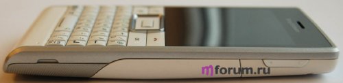 Вернемся к четырехпозиционной пластиковой клавише навигации на лицевой панели. Нажимать ее "вниз" не очень удобно - к ней практически вплотную примыкают клавиши QWERTY-клавиатуры. В центре клавиши навигации находится клавиша подтверждения. Слева и справа – четыре функциональные клавиши. На правом торце аппарата находится «качелька» регулировки громкости. Ее центральная часть немного утоплена в корпус. Качелька очень удобная и легко нажимается.