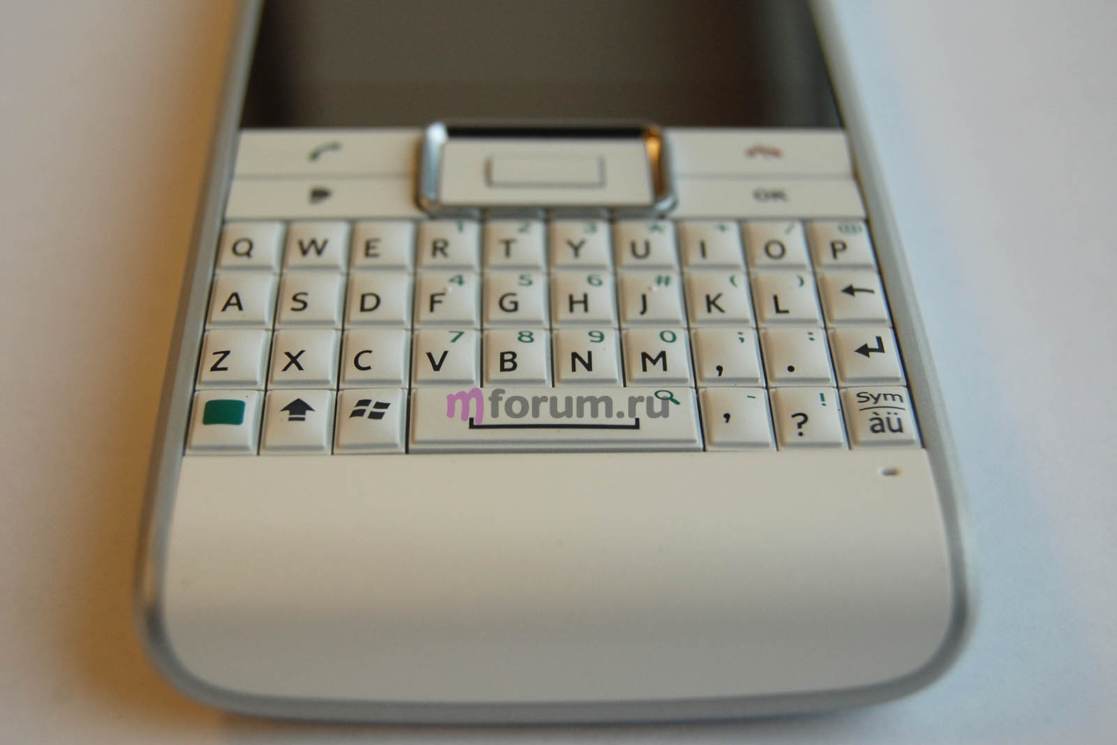 Одна из самых главных «фишек» Aspen’а – полноценная QWERTY-клавиатура. Она также сделана из качественного пластика. Форма кнопочек напоминает усеченные пирамидки – на конце они слегка приплюснуты. Расстояние между ними минмальное, выбранная ширина лицевой части аппарта явно ограничивала дизайнера. Ход у клавиш небольшой, нажимаются относительно удобно, с характерным щелчком, но для быстрой работы с клавиатурой придется с ней осваиваться. В прототипах, которые мы держали в руках, на клавишах «латиница». В российской поставке появится и «кириллица», причем она будут выделяться на фоне латиницы. Для букв использована эко-дружественная краска на водной основе. Производитель обещает, что это никак не скажется на ее "выносливости", стираться такие буквы в течение срока пользования аппаратом не должны. Клавиатура снабжена подсветкой, в темноте набирать текст получается без напряжения.