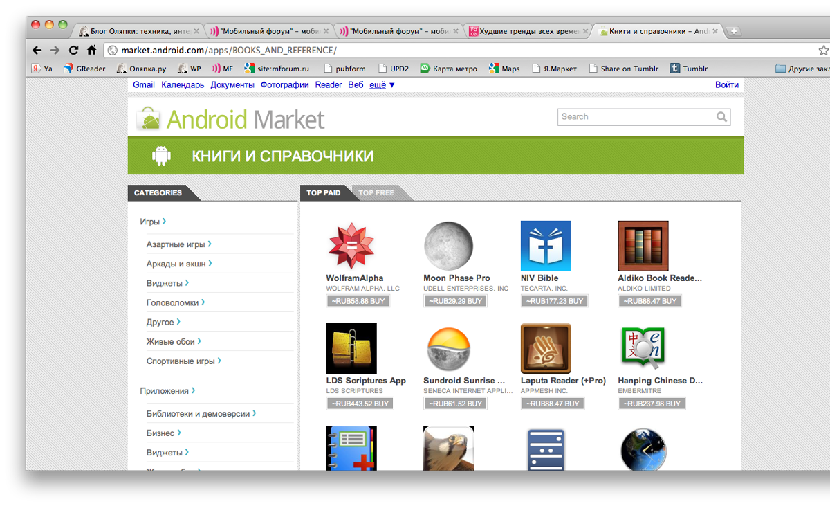 При этом понравившиеся приложения можно будет направлять непосредственно в мобильное устройство прямо из собственного аккаунта в Google. Для этого необходимо зарегистрироваться на веб-сайте Android Market и синхронизировать с сервисом информацию о вашем Android-девайсе. Также предусмотрена опция инсталляции приложений на разные устройства. Так что если у вас имеются и смартфон, и планшет, вы сможете выбрать, на какое из устройств инсталлировать приложение. Также можно будет переинсталлировать уже имеющееся приложение на другое устройство.