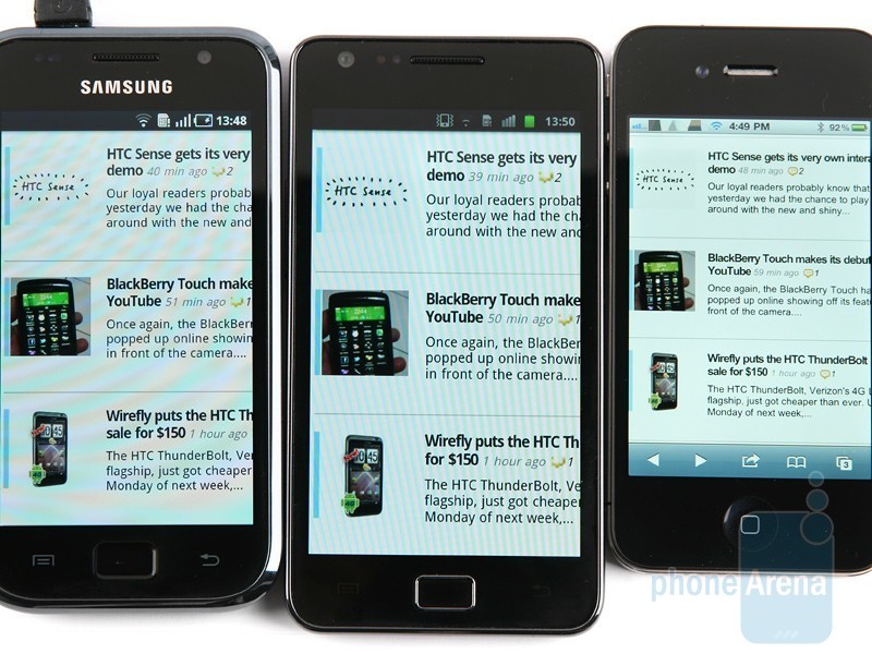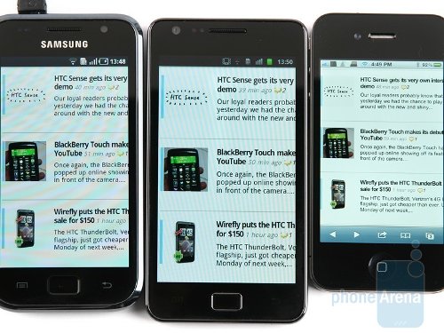 Журналисты ресурса phonearena.com провели краткий сравнительный обзор эксплуатационных характеристик дисплеев Super AMOLED Plus (новый Samsung Galaxy S II), Super AMOLED (Samsung Galaxy S) и IPS-LCD Retina Display (iPhone 4).