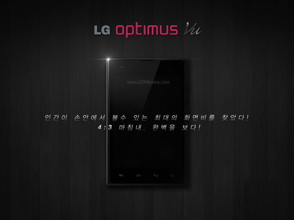 LG представила в Южной Корее рекламные тизеры готовящегося к выходу смартфона Optimus Vu. Основной предмет гордости новинки - 5-дюймовый сенсорный IPS-экран с соотношением сторон 4:3, благодаря чему площадь поверхности дисплея получилась больше, чем у других 5-дюймовых дисплеев.