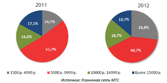 В течение 2012 года Розничная сеть МТС реализовывала стратегию, направленную на повышение доли смартфонов в общем объеме продаж как девайсах, стимулирующих пользование операторскими услугами и повышающих показатель ARPU.