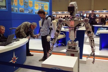 Этого телеуправляемого андроида, разработанного во ВНИИ ГО и ЧС при финансировании Фондом перспективных исследований, обещают испытать в 2016 году на полосе препятствий на Ногинском полигоне, где он будет соревноваться с людьми.
