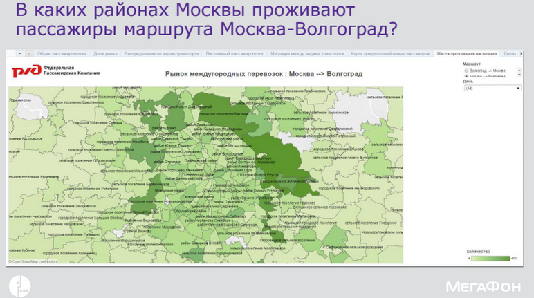 Спору нет, презентация хорошая, тема интересная, да и результаты получаются неплохие. Проблема в другом - аналитику еще надо суметь продать. А это совсем не просто, соответствующего опыта у МегаФона мало. И то, что РЖД будет платить МегаФону или МегаЛабз за этот проект, это еще большой вопрос. Насколько я знаю, первый проект, с Правительством Москвы не принес МегаФону дохода. В РЖД тоже вполне могут почесать в затылке и решить, что они эту задачу и сами на коленке решат своими силами.