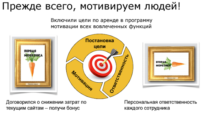 Крайне тяжелая работа по перелопачиванию базы была проведена. Мы шли к наиболее одиозным арендодателям. Везде, где видили потенциал, шла работа. Соответственно те, кто добивался для компании успеха, получали достаточно серьезное вознаграждение.