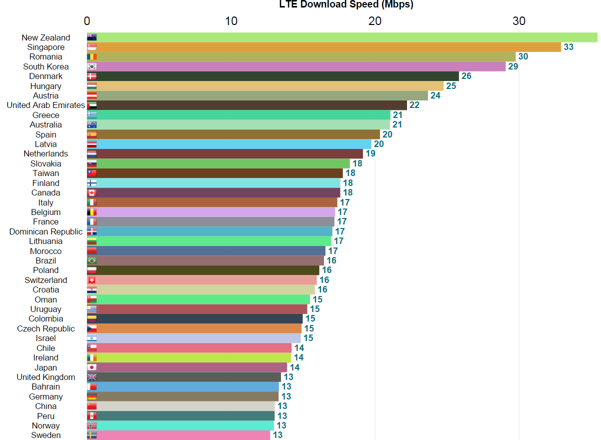 Самый быстрый LTE - в Новой Зеландии - 36 Мбит/с в реальных условиях.