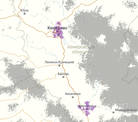 У МегаФона в Кузбассе с покрытием дело обстоит скромнее.