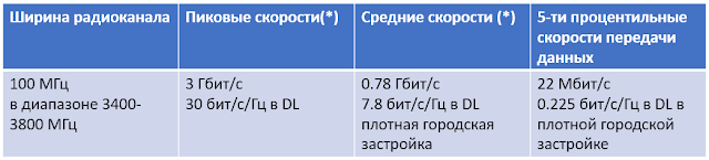 (*) теоретические скорости передачи данных в сети 5G с учетом заданной ширины канала.