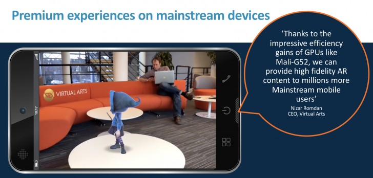 По заявлению производителя, GPU Mali G52 обеспечит 30% прирост “performance density” (плотности производительности) относительно Mali G51. Поскольку большие чипы стоят дороже, при использовании G52 разработчики систем-на-чипе могут получить более высокие значения fps по той же цене или более дешевые чипы при одинаковой производительности. Кроме того, новый чип стал на 15% энергоэффективнее.