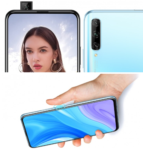 Фоточасть Huawei P smart Pro включает в себя 48 Мп тыловую камеру с дополнительными 8 Мп (ультра-широкоугольная, 120°) и 2 Мп (датчик глубины) сенсорами, а также 16 Мп всплывающую камеру для сэлфи. На передней панели разместился 6,59-дюймовый дисплей разрешением 1080p+ c соотношением сторон 19,5:9 без вырезов и отверстий.