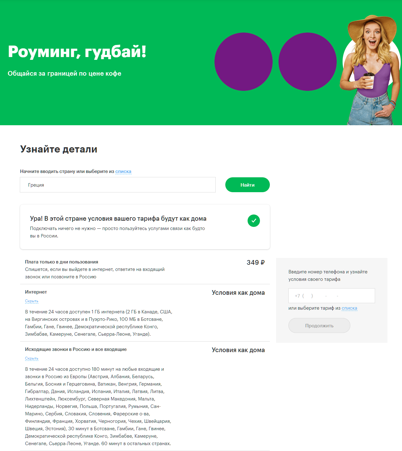 С 17 марта 2020 года объём голосовых вызовов в рамках пакета Роуминг, гудбай! увеличивается в три раза с 60 до 180 минут в день. Также абонентам доступен 1 ГБ интернета. Новые условия будут действовать до 31 марта 2020 года.
