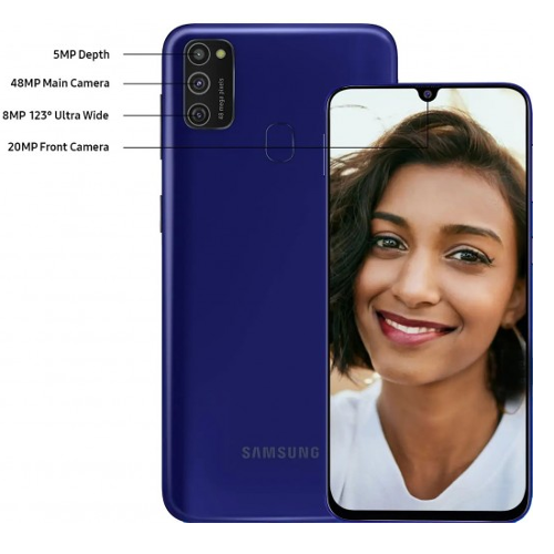 Разрешение фронтальной камеры Samsung Galaxy M21 составляет 20 Мп, а «сердцем» новинки стал чипсет Exynos 9611. В части объемов памяти представлено две версии – с 4 Гб ОЗУ + 64 Гб встроенной памяти и с 6 Гб ОЗУ и 128 Гб встроенной памяти. Для расширения встроенной памяти можно использовать карты памяти microSD объемом до 512 Гб. Диагональ экрана Samsung Galaxy M21 – 6,4 дюйма при разрешении FullHD+. Дактилоскопический сенсор разместился на задней панели. Выпускаться Samsung Galaxy M21 будет в черном и синем цветах. Версия 4+64 Гб, продажи которой в Индии начнутся 23 марта, оценена в 12 999 рупий. Стоимость и дата начала продаж Samsung Galaxy M21 с 6 Гб ОЗУ и 128 Гб встроенной памяти пока не сообщается.