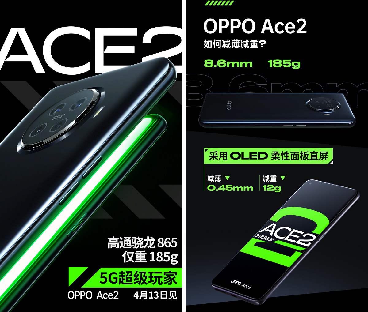 Компания OPPO опубликовала промоматериалы смартфона Ace 2. Новинка получила 6,5-дюймовый AMOLED-дисплей с круглым вырезом под фронтальную камеру разрешением 16 Мп и базируется на чипсете Snapdragon 865 с модемом X55.