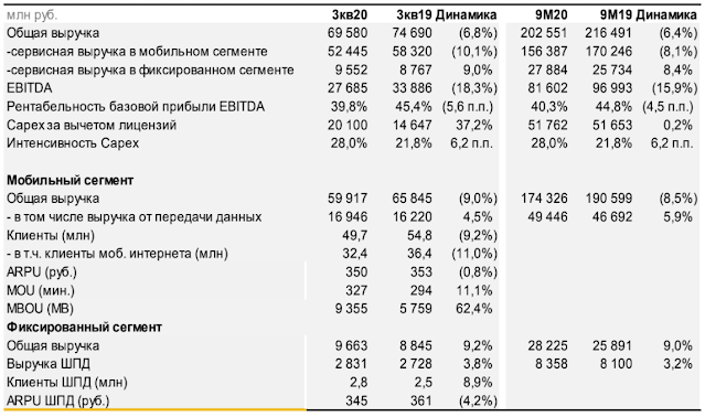 теги: Билайн ВымпелКом итоги квартала 3q2020