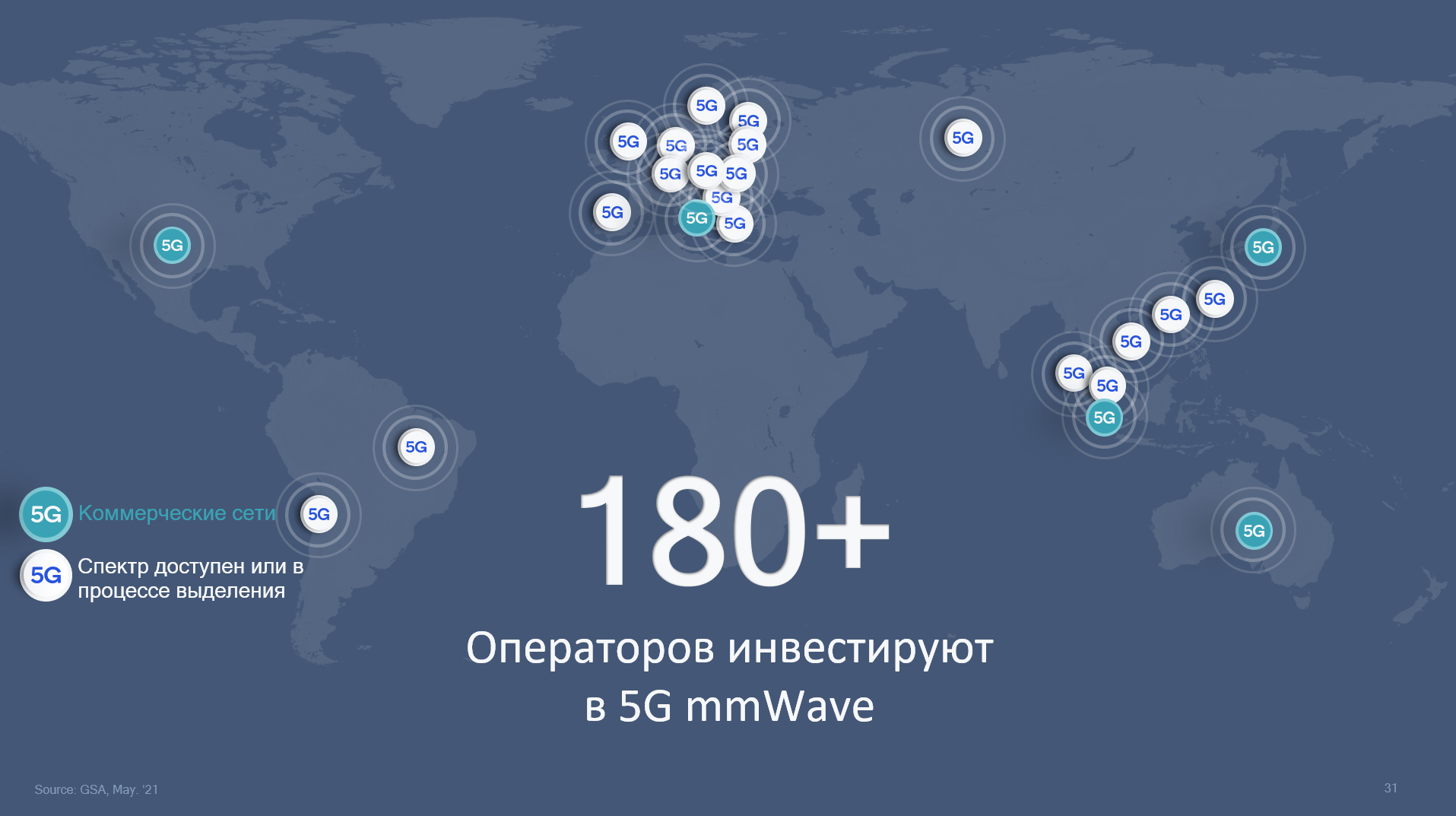 Сегодня более 180 операторов в мире инвестируют в создание сетей 5G с использованием диапазона миллиметровых волн.