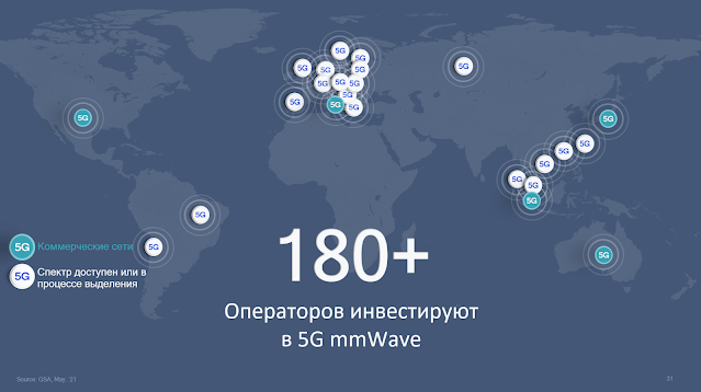 Еще один важный факт - 180 операторов из 45 стран инвестируют в технологию 5G mmWave. В частности, китайская компания China Unicom запустит 5G mmWave для поддержки проведения зимней Олимпиады 2022.