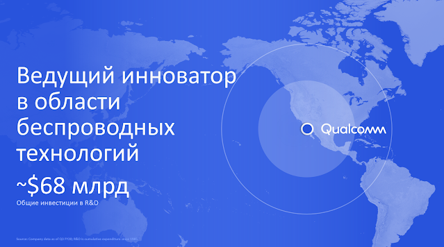 Как мы не раз заявляли, Qualcomm остается привержен политике существенных инвестиций в разработку новых беспроводных технологий, в подтверждение этому Qualcomm приводит оценку общих инвестиций компании в R&D активности, которая составила уже порядка $68 млрд. //
