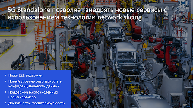 Ключевое предназначение 5G SA – применение этих сетей в индустриальных секторах, например, для организации smart factory Индустрии 4.0. Этому способствуют новые функциональности таких сетей, включая, прежде всего network slicing, гарантированные задержки, гарантированную пропускную способность и гарантированную емкость. Это также низкие задержки, новый уровень безопасности и конфиденциальности данных, поддержка многочисленных новых сервисов за счет network slicing. В довершение такие сети будет проще развернуть и эксплуатировать, проще масштабировать.