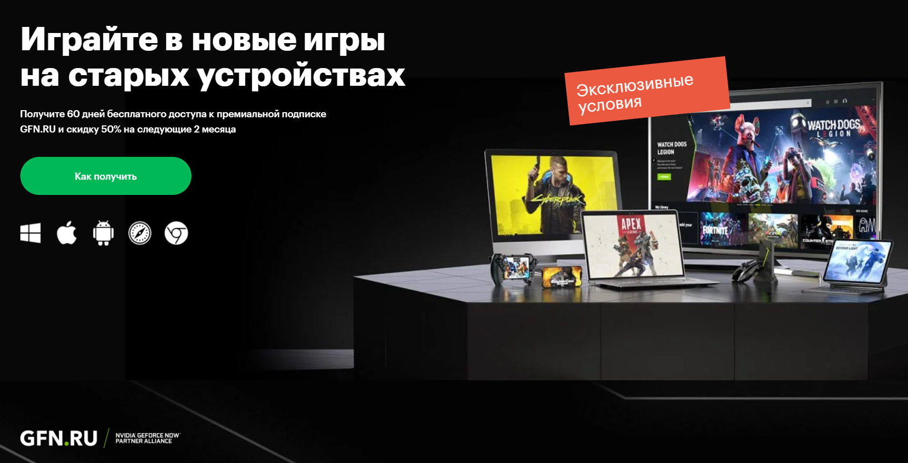 Новую услугу GeForce NOW "МегаФон" предлагает в партнерстве с GFN.RU. Она доступна абонентам тарифной линейки "Без переплат". Для абонентов оператора предлагается, во-первых, промокод, который дает 50% скидки на первые два месяца пользования, а затем еще полгода скидка будет составлять 25%.