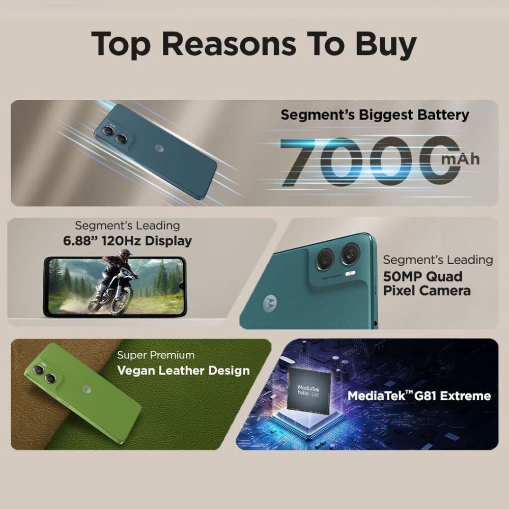 Moto G06 Power будет доступен в цветах Tendril, Tapestry и Laurel Oak. Он будет продаваться по цене 7 499 рупий за вариант емкостью 4 ГБ + 64 ГБ и поступит в продажу с 11 октября на Flipkart, motorola.in и в розничных магазинах.