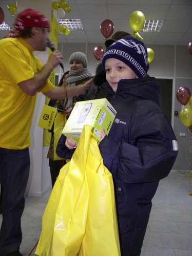| Молодой человек Сергей Богатов выиграл в импровизированной лотерее телефон Alcatel 320 |