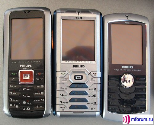 "Троица" с touch screen: Philips 550, 759, 755 (слева направо).