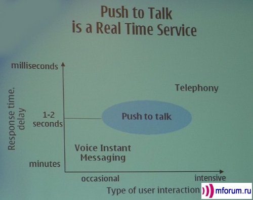| PoC занимает промежуточное место между обычной телефонией и передачей речевых сообщений |
