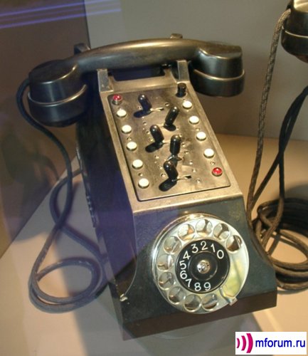 Сделанный из чудесного материала "бакелит" (из него несколько десятилетий делали телефоны в самых разных странах), этот аппарат позволяет подключить к нему сразу несколько телефонных линий.