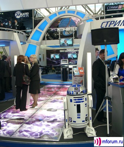 "МТУ-Интел" в оформлении своего стенда воспользовался модной темой "Звездных войн". Посетителей встречают знаменитые роботы из сериала.