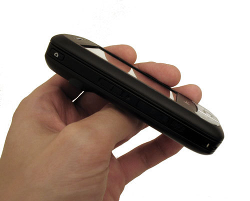 Аппарат поддерживает карты памяти формата microSD (Transflash), слот для которых находится на левой боковой стороне. Он прикрыт заглушкой из гибкого пластика, которая элементарно отодвигается на 180 градусов и нисколько не мешает манипуляциям с карточкой. |