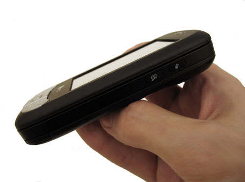 К речевому динамику претензий нет: запас громкости и четкость речи отличные. По обеим сторонам от него, кстати, расположены служебные индикаторы: левый - для режима ожидания (постоянно мигает, а при зарядке горит ровным светом), а правый -для Bluetooth. Полифонический динамик находится на задней стороне аппарата (вверху справа); звук у него сочный, яркий, а на максимальной громкости никаких хрипов отмечено не было. Спикерфон активируется после ответа на вызов нажатием графической кнопки "Динамик вкл" (деактивируется так же) или из меню разговора (правая софт-кнопка). Вибровызов не очень сильный, так что риск пропустить с ним звонок или сообщение существует. |